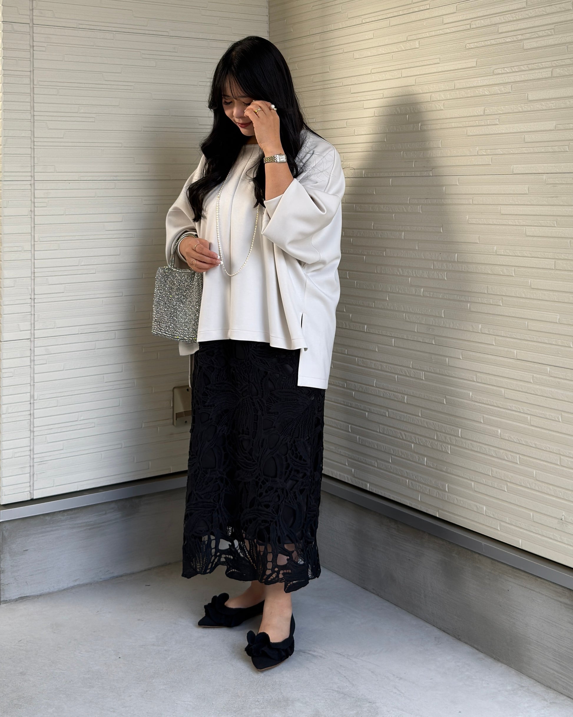 カラー展開はパールグレー・グレー・ブルー・ブラウンの全4色。デニムやワイドパンツはもちろん、レーススカート“Magnolia”とのコーディネートもおすすめです。