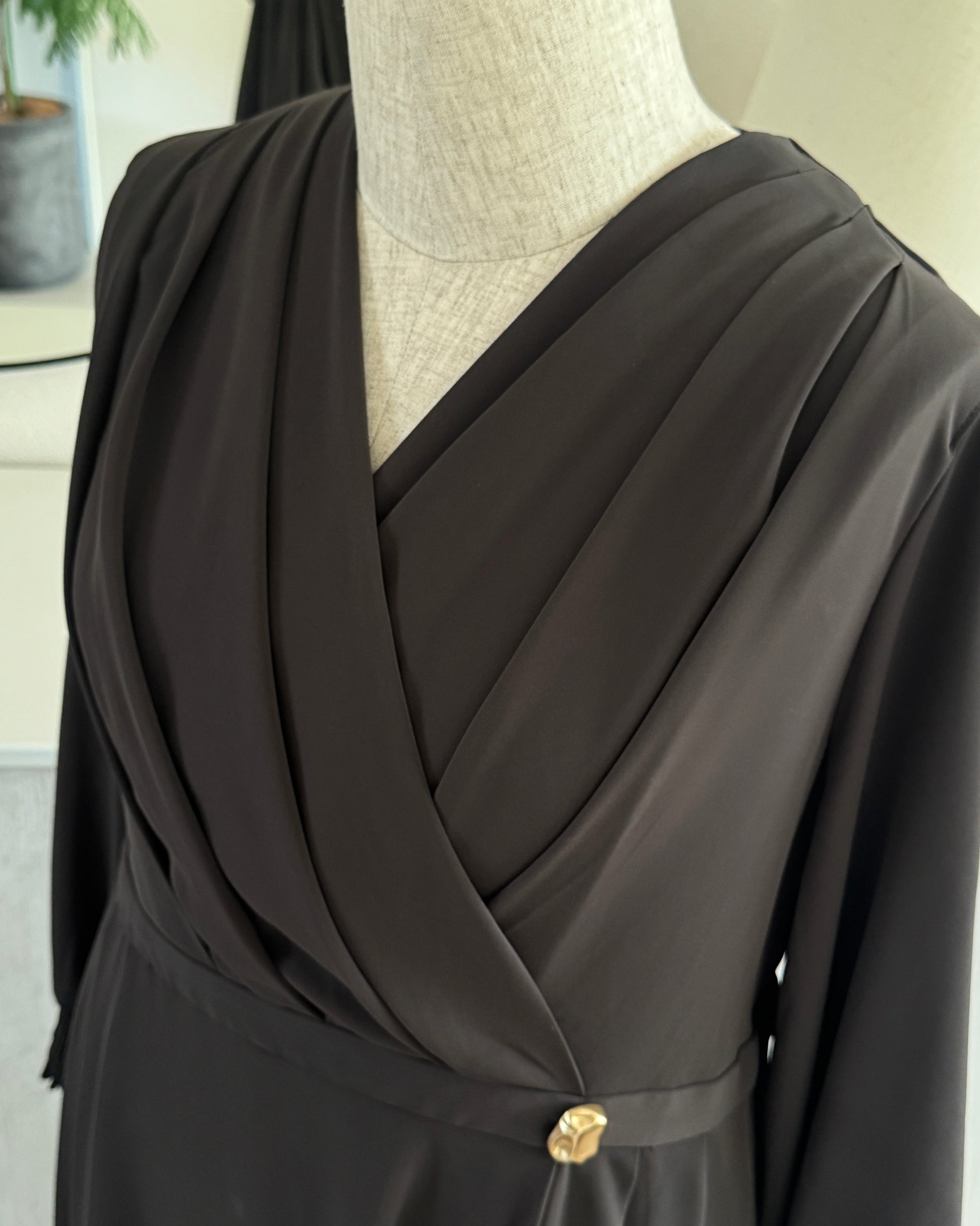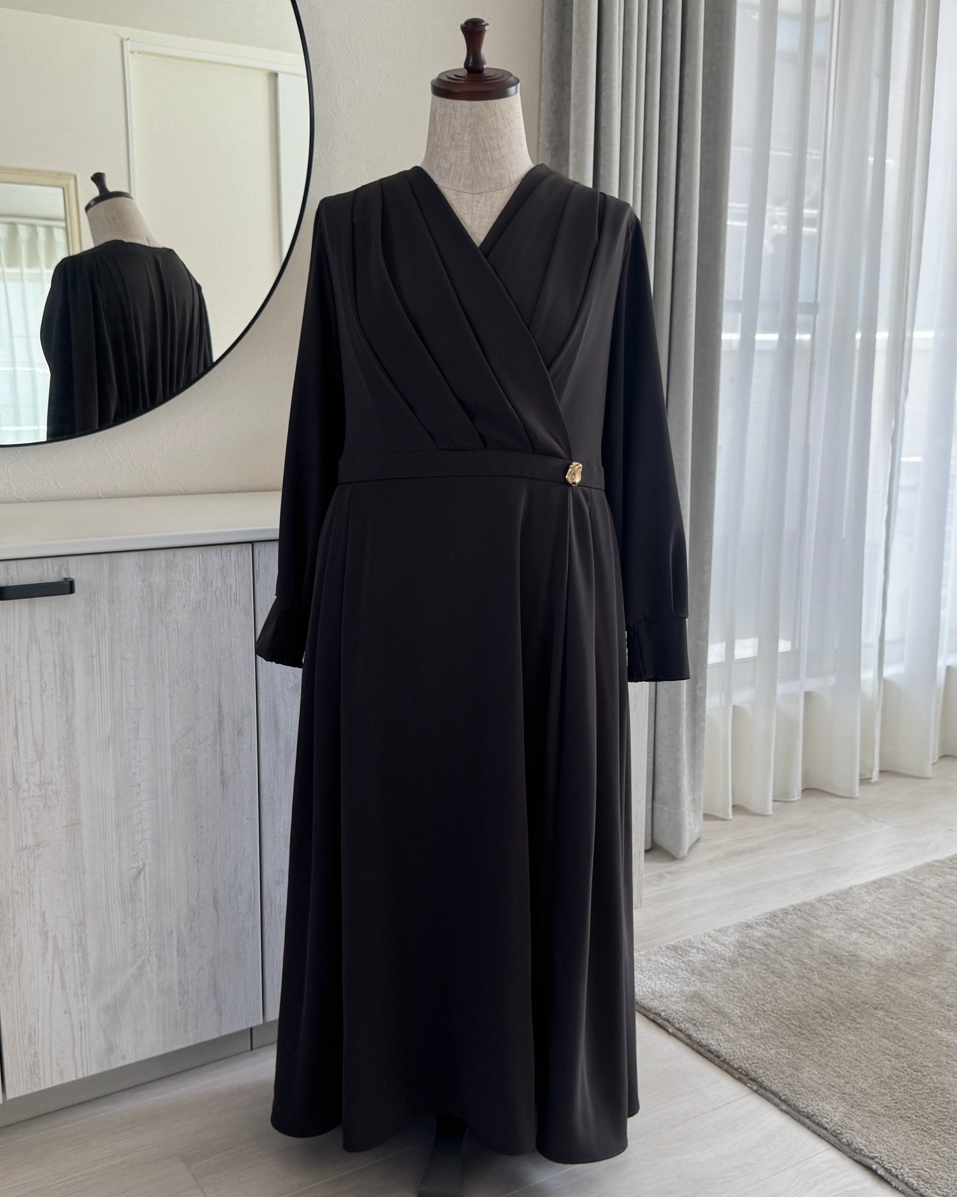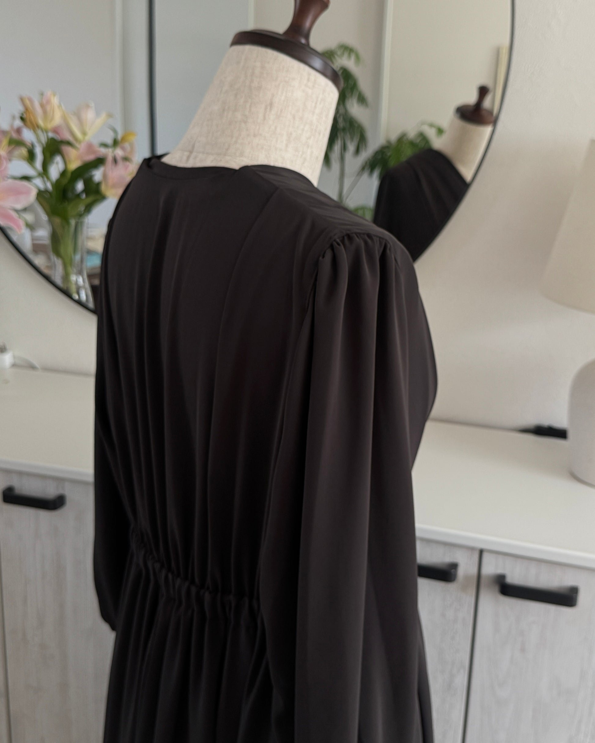 ・本商品の胸元のドレープ部分は、肩に入れたタックで立体感を表現しております。