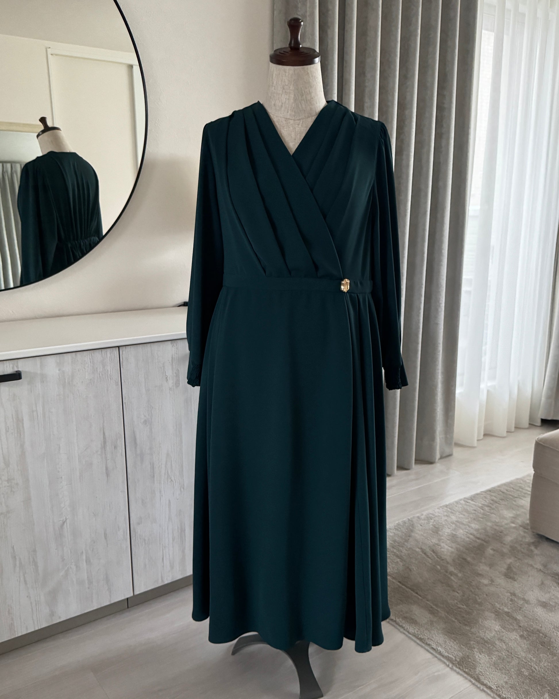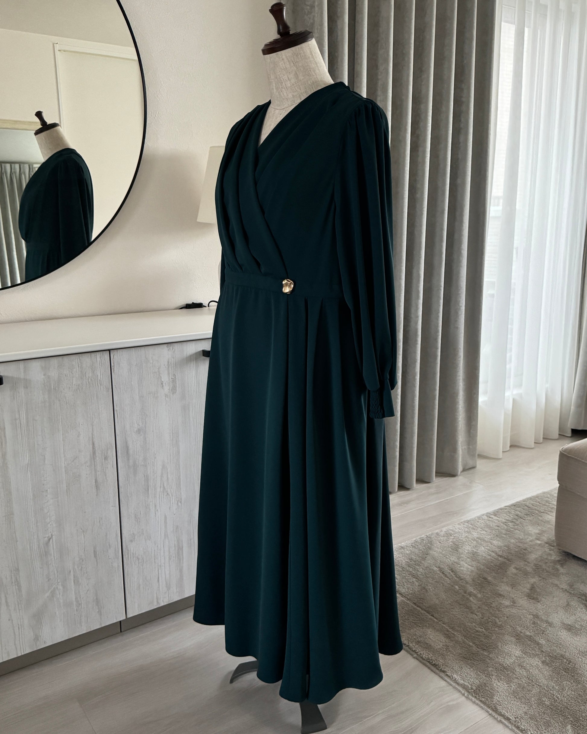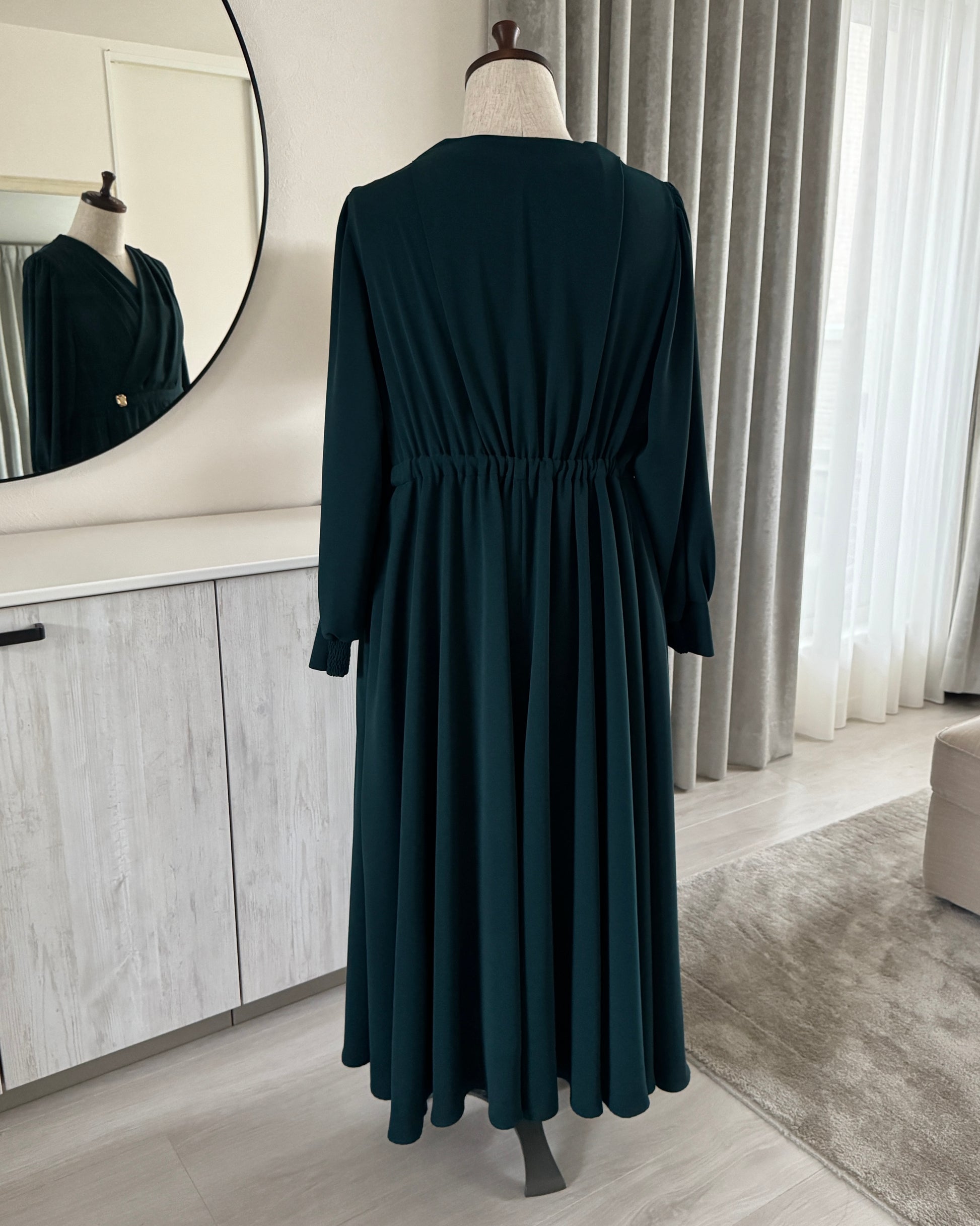 歩くたびにふわっと揺れるドレープが美しいシルエットを描きます。