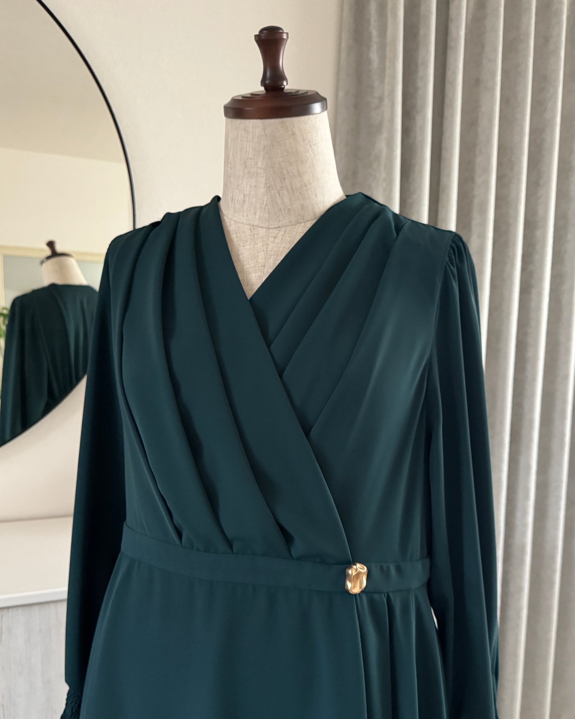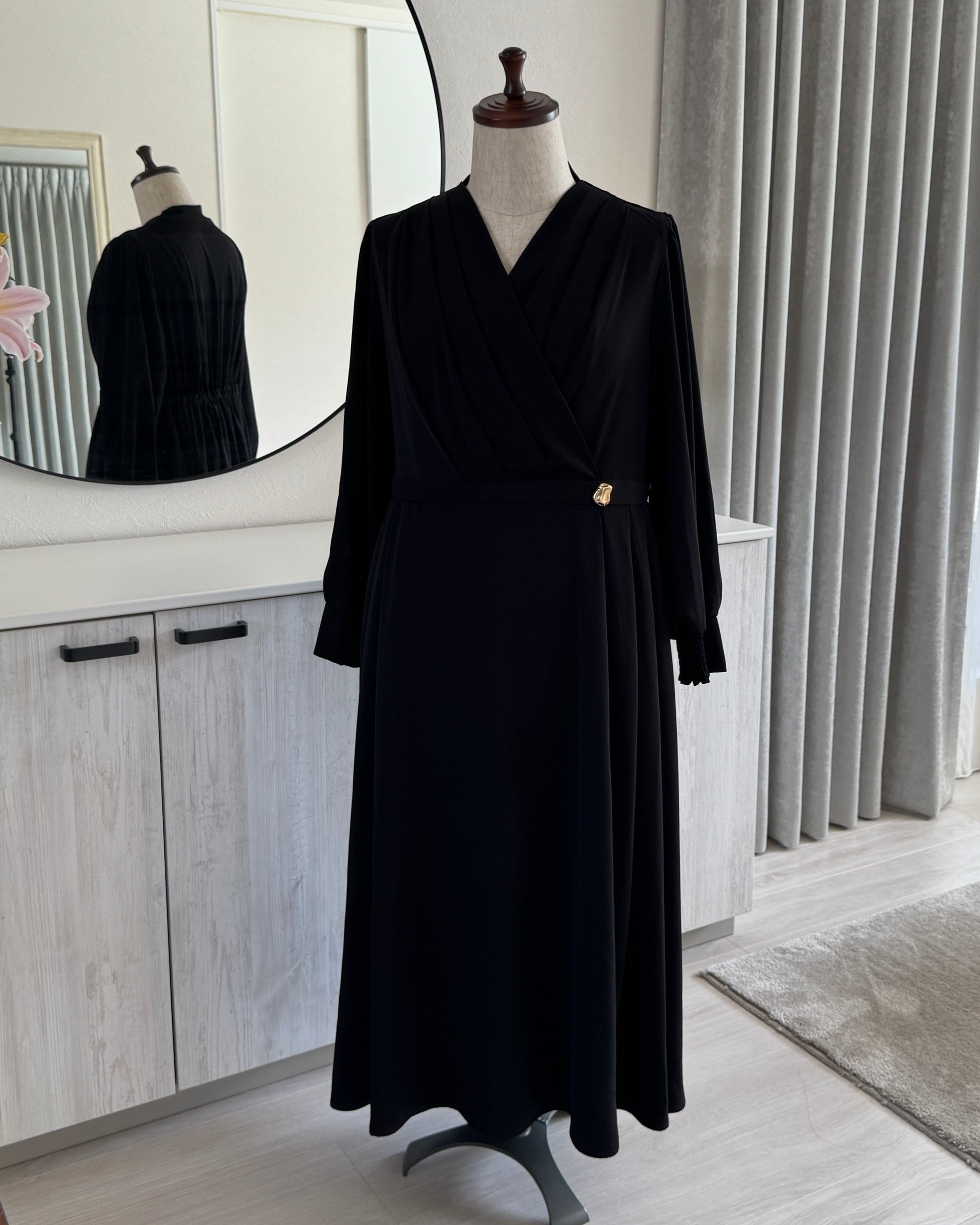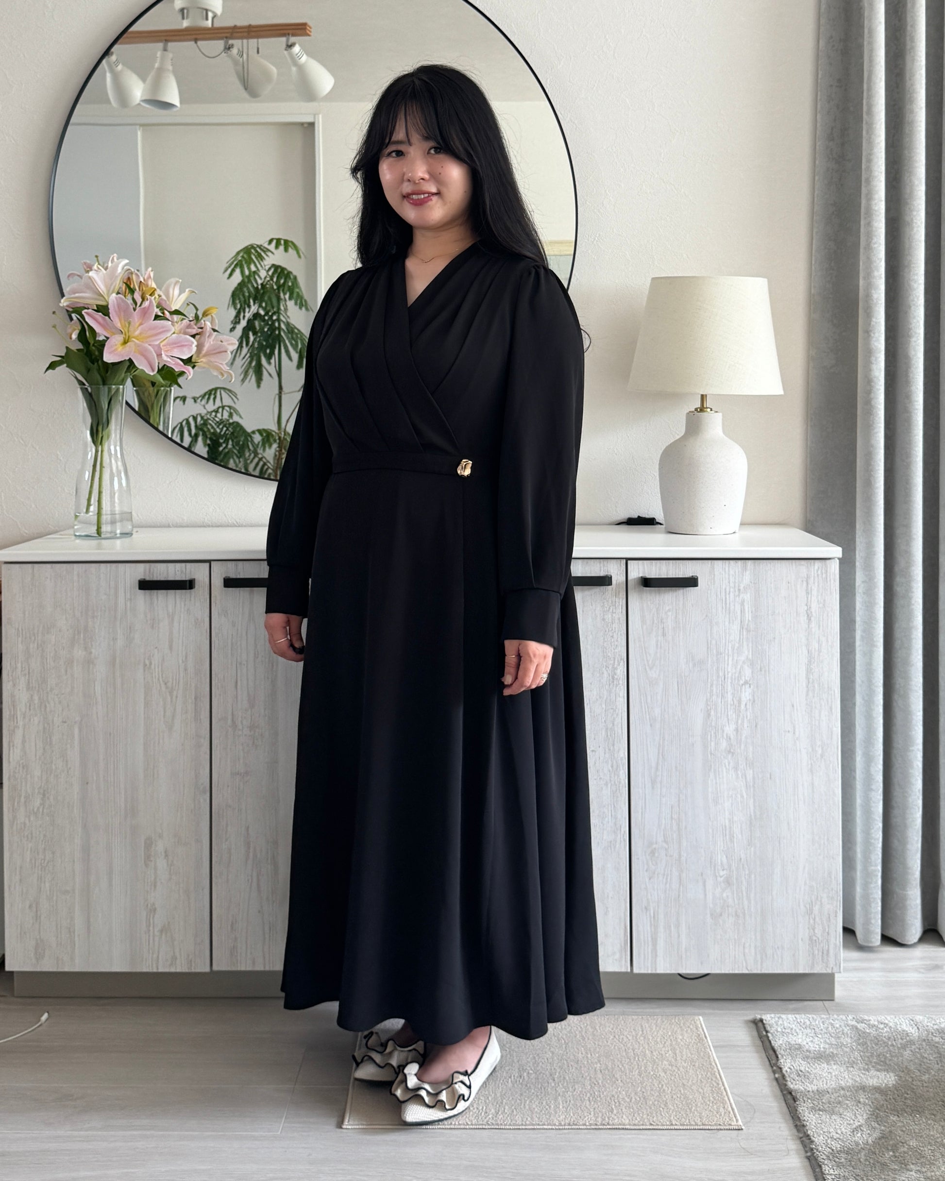 胸元はドレープ感のあるカシュクールデザインで仕立てました。